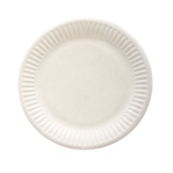 Paper plate for cold and hot foods. Used for serving ready meals at various events. Single use only.